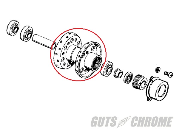 1967-72年のビッグツインに適合の通称「ミッドスター」ハブです。
