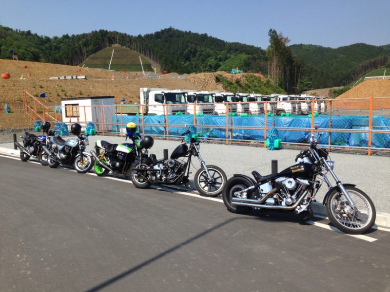 震災復興、女川駅前にて:皆でツーリング